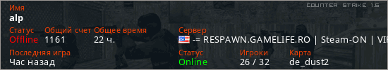 Играет на Counter Strike 1.6 сервере. Страна: СШАПервый раз замечен 01:14 21.12.2025