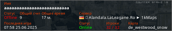Играет на Counter Strike 1.6 сервере. Страна: ГерманияПервый раз замечен 14:01 22.05.2025