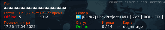 Играет на Counter Strike Global Offensive сервере. Страна: КазахстанПервый раз замечен 16:26 17.04.2025