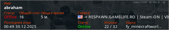 Играет на Counter Strike 1.6 сервере. Страна: СШАПервый раз замечен 00:36 30.12.2025