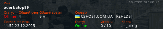 Играет на Counter Strike 1.6 сервере. Страна: УкраинаПервый раз замечен 11:46 23.12.2025