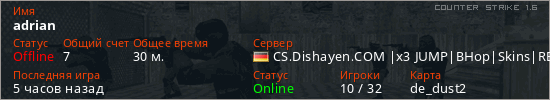Последний раз был в сети 4 часа назад Игрок с таким ником замечен на 29 серверах