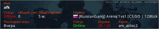 Играет на Counter Strike Global Offensive сервере. Страна: РоссияПервый раз замечен 09:40 06.03.2026