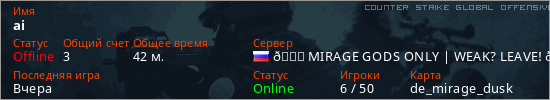 Играет на Counter Strike Global Offensive сервере. Страна: РоссияПервый раз замечен 15:20 02.01.2026