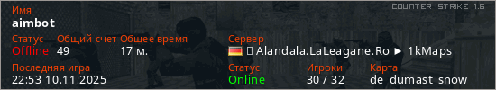 Последний раз был в сети 22:53 10.11.2025 Игрок с таким ником замечен на 23 серверах