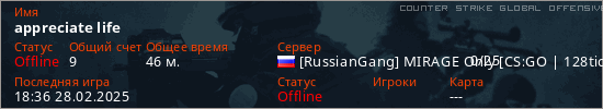 Играет на Counter Strike Global Offensive сервере. Страна: РоссияПервый раз замечен 15:16 30.01.2025