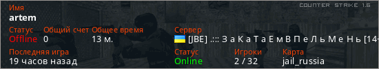 Играет на Counter Strike 1.6 сервере. Страна: УкраинаПервый раз замечен 16:10 24.04.2026