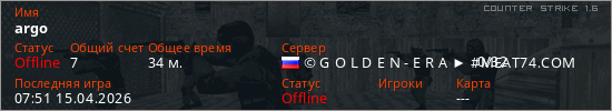 Играет на Counter Strike 1.6 сервере. Страна: РоссияПервый раз замечен 08:29 18.02.2026