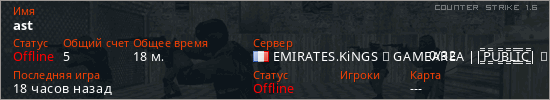 Играет на Counter Strike 1.6 сервере. Страна: ФранцияПервый раз замечен 06:45 29.04.2026