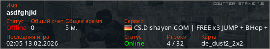 Играет на Counter Strike 1.6 сервере. Страна: ГерманияПервый раз замечен 02:01 13.02.2026