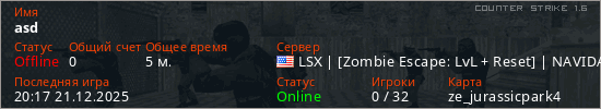 Играет на Counter Strike 1.6 сервере. Страна: СШАПервый раз замечен 20:15 21.12.2025