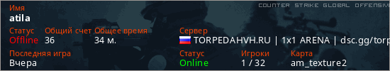 Играет на Counter Strike Global Offensive сервере. Страна: РоссияПервый раз замечен 12:02 11.04.2026