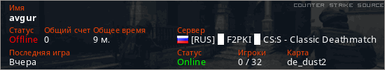 Последний раз был в сети Вчера Игрок с таким ником замечен на 2 серверах