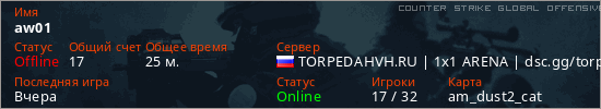 Играет на Counter Strike Global Offensive сервере. Страна: РоссияПервый раз замечен 18:30 02.04.2026