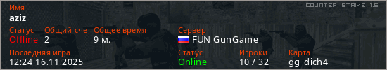 Играет на Counter Strike 1.6 сервере. Страна: РоссияПервый раз замечен 19:36 07.03.2025