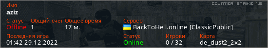 Играет на Counter Strike 1.6 сервере. Страна: УкраинаПервый раз замечен 01:28 29.12.2022