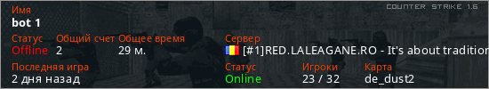 Играет на Counter Strike 1.6 сервере. Страна: РумынияПервый раз замечен 12:15 24.04.2024