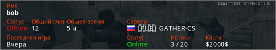 Последний раз был в сети Вчера Игрок с таким ником замечен на 63 серверах