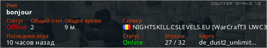 Играет на Counter Strike 1.6 сервере. Страна: РумынияПервый раз замечен 21:57 10.02.2026