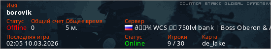 Играет на Counter Strike Global Offensive сервере. Страна: РоссияПервый раз замечен 02:02 10.03.2026