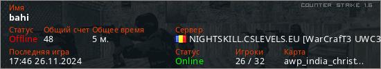 Играет на Counter Strike 1.6 сервере. Страна: РумынияПервый раз замечен 17:43 26.11.2024
