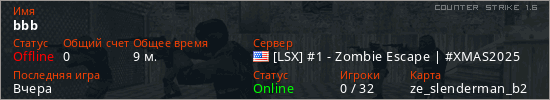 Играет на Counter Strike 1.6 сервере. Страна: СШАПервый раз замечен 16:50 04.12.2025