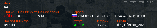 Последний раз был в сети Вчера Игрок с таким ником замечен на 10 серверах