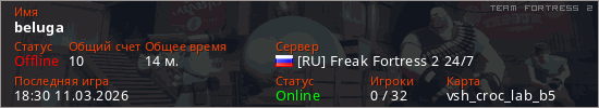 Играет на Team Fortress 2 сервере. Страна: РоссияПервый раз замечен 17:03 11.03.2026