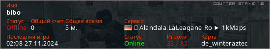 Последний раз был в сети 02:08 27.11.2024 Игрок с таким ником замечен на 15 серверах
