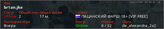Последний раз был в сети Вчера Игрок с таким ником замечен на 17 серверах