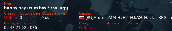 Играет на Counter Strike Global Offensive сервере. Страна: РоссияПервый раз замечен 09:21 21.02.2026