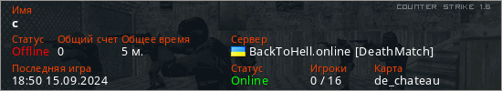Играет на Counter Strike 1.6 сервере. Страна: УкраинаПервый раз замечен 18:48 15.09.2024
