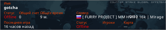 Играет на Counter Strike Global Offensive сервере. Страна: РоссияПервый раз замечен 14:17 27.02.2026