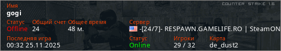 Играет на Counter Strike 1.6 сервере. Страна: СШАПервый раз замечен 08:10 17.02.2025