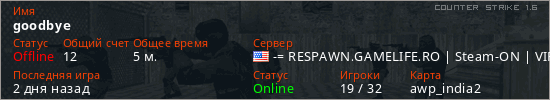 Играет на Counter Strike 1.6 сервере. Страна: СШАПервый раз замечен 15:58 31.01.2026