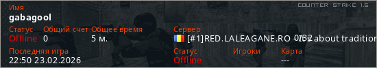 Играет на Counter Strike 1.6 сервере. Страна: РумынияПервый раз замечен 22:46 23.02.2026