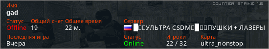 Последний раз был в сети Вчера Игрок с таким ником замечен на 17 серверах