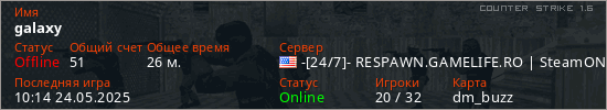 Играет на Counter Strike 1.6 сервере. Страна: СШАПервый раз замечен 02:39 23.04.2025