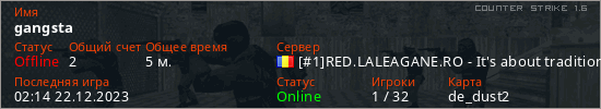 Играет на Counter Strike 1.6 сервере. Страна: РумынияПервый раз замечен 02:02 22.12.2023