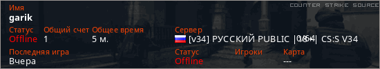 Играет на Counter Strike Source сервере. Страна: РоссияПервый раз замечен 21:32 25.12.2025