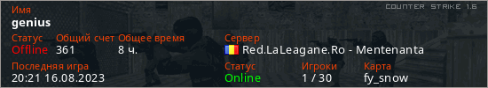 Играет на Counter Strike 1.6 сервере. Страна: РумынияПервый раз замечен 11:58 02.03.2023