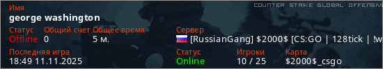 Играет на Counter Strike Global Offensive сервере. Страна: РоссияПервый раз замечен 18:45 11.11.2025