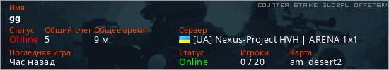 Играет на Counter Strike Global Offensive сервере. Страна: УкраинаПервый раз замечен 12:46 13.02.2026
