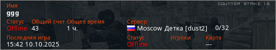 Играет на Counter Strike 1.6 сервере. Страна: РоссияПервый раз замечен 22:51 09.02.2022