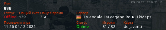 Последний раз был в сети 2 дня назад Игрок с таким ником замечен на 48 серверах