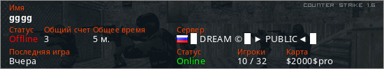 Последний раз был в сети Вчера Игрок с таким ником замечен на 29 серверах