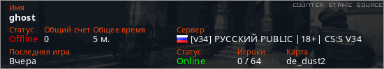 Последний раз был в сети Вчера Игрок с таким ником замечен на 53 серверах