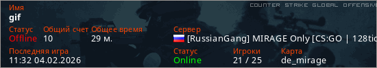 Играет на Counter Strike Global Offensive сервере. Страна: РоссияПервый раз замечен 13:23 03.02.2026