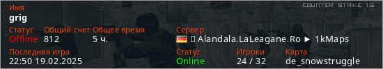 Последний раз был в сети 22:50 19.02.2025 Игрок с таким ником замечен на 4 серверах