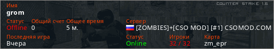 Последний раз был в сети Вчера Игрок с таким ником замечен на 23 серверах